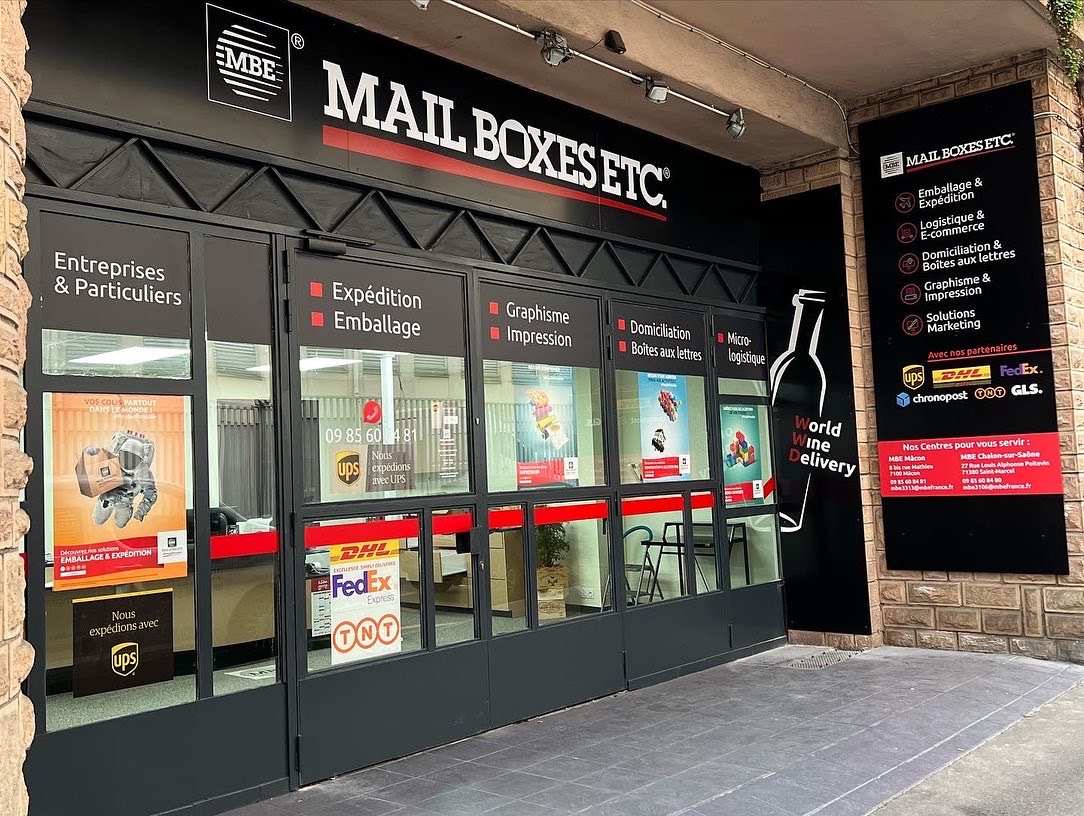 Votre Centre Mail Boxes Etc. Mâcon, situé au 8 bis rue Mathieu, 71000 Mâcon est spécialisé dans les services pour professionnels et particuliers. Nous vous proposons l'emballage et l'expédition de vos colis en France comme à l'international avec nos transporteurs partenaires: UPS, DHL, FEDEX, TNT, GLS et Chronopost. Spécialisés dans le secteur viticole, nous vous offrons la possibilité d'expédier des bouteilles de vins à des particuliers mais aussi des échantillons à des professionnels, le tout à travers le monde ! Nous proposons également une assistance complète dans la préparation de la documentation douanière pour les envois à l'international. Vous avez un besoin de copies ou d'impression numérique ? Nous imprimons vos supports de communication : carte de visite, flyer, affiches, menus...