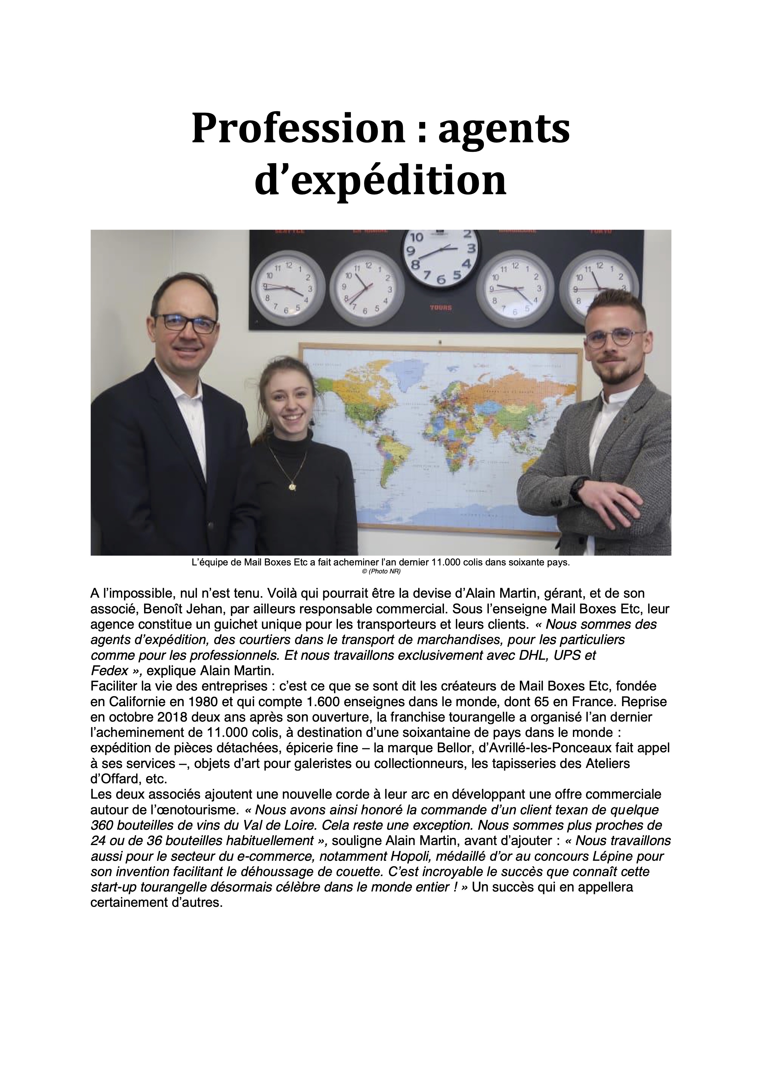 - Nous assurons vos expéditions, quelle qu'en soit la destination